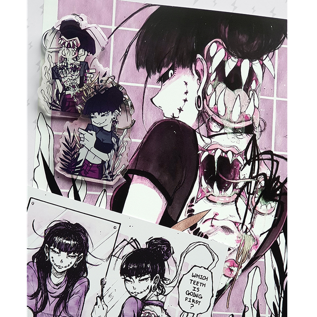Original print and interpretation of Futakuchi. There’s a spider in one of those mouths. Can you see it? (⊙∇⊙)
