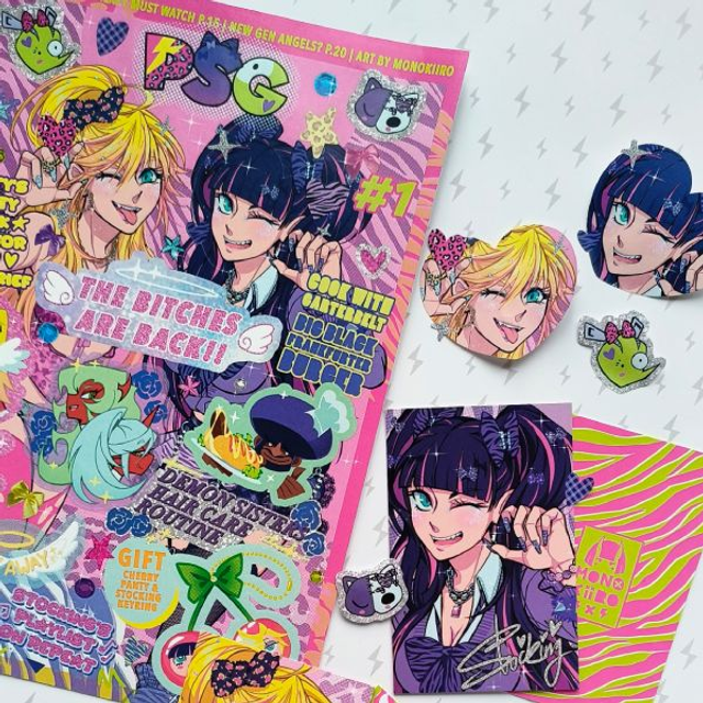 Original fanart of Panty & Stocking in gyaru fashion magazine cover theme sticker sheet